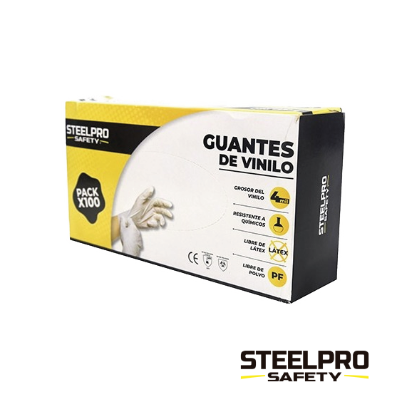 GUANTE VINILO DESCARTABLE (CAJA x 100) STEELPRO