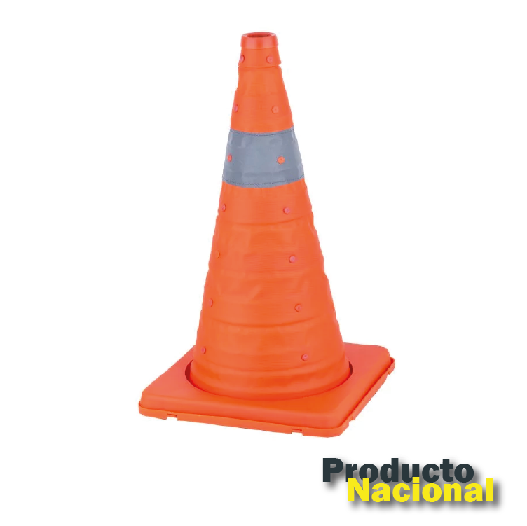 El cono vial escualizable esta diseñado para su practico funcionamiento, cuenta con una base cuadrada y franja reflectiva.