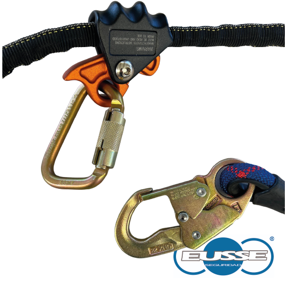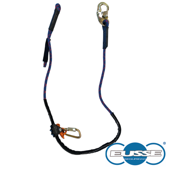 Eslinga de longitud graduable para realizar posicionamiento y/o restricción, permitiendo al usuario el trabajo con manos libres, conformando por una cuerda de alma y funda trenzada, ganchos en los extremos de 18MM de abertura y un sistema por hebilla para ajuste de longitud.