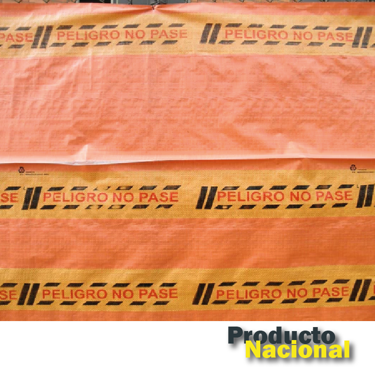 Tela Tejida, tipo Ingles para cerramiento, en polipropileno, impresión “PELIGRO NO PASE” con laminación y aditivo ultra violeta que garantiza su durabilidad durante 12 meses.